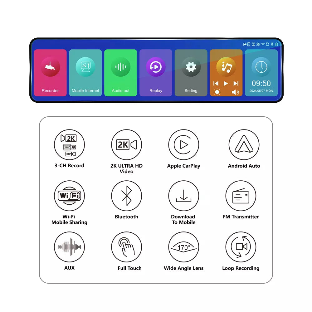 Aoocci P112 4K/2K Dashcam GPS Recorder 3-kanałowy przenośny CarPlay/AA Car Radio